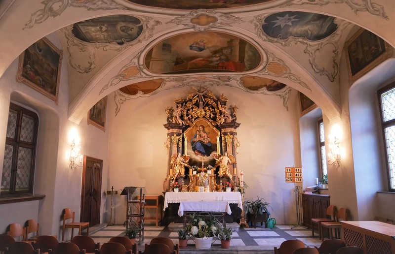 Die vom Kreuzgang her zugängliche Schatzkammerkapelle ist ein beeindruckendes Zeugnis der Wallfahrtsgeschichte von Graz Mariahilf. Die Deckenmalereien zeigen die vollbrachten Wunder der Mariahilfer Gnadenmutter.